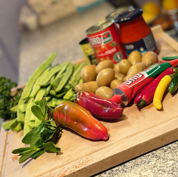 Zuletzt geben wir die geschälten Tomaten dazu. Alles gut umrühren und abschmecken.