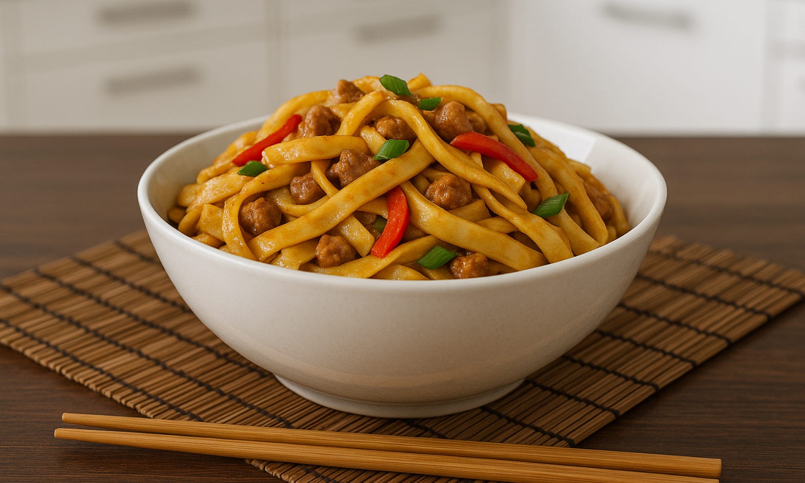 Sollen die Bandnudeln einen Schuss mehr Farbe und Aroma bekommen, gebt einfach einen Esslöffel Curcuma in das Kochwasser.
