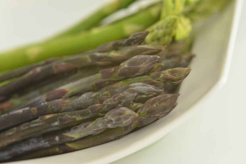 Purpurspargel wird wie der grüne Spargel weder geschält noch gekocht. Er schmeckt noch intensiver, als sein grüner Bruder und hat schon ein fast nussiges Aroma. Daher wurde ich zum Braten ein gutes Olivenöl mit einem Schuss Sesamöl empfehlen. Auch gerösteter Sesam passt hervorragend. Bitte nur kurz anbraten, sonst verliert der Spargel seine purpurne Färbung.