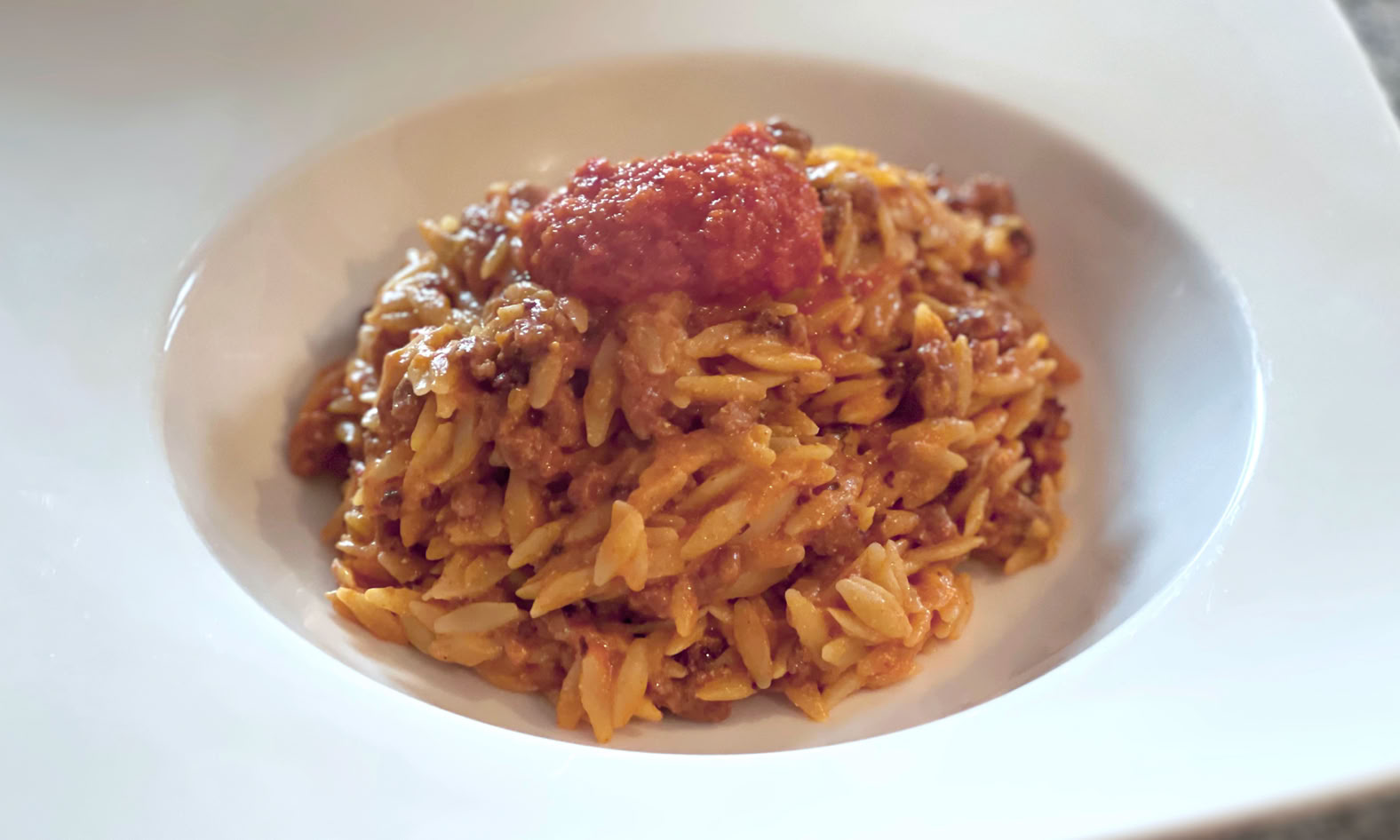 Kritharaki sind keine griechische Metal-Band, sondern griechische Reisnudeln. Doch der Name trügt. Kritharaki bestehen wie klassische Pasta aus Wasser und Hartweizengries. Den Namen verdanken sie ihrer typischen Form, die an Getreide oder Reis erinnert. Hierzulande kennt man sie auch als 'griechische Nudeln', 'Landnudeln' oder 'Reisnudeln'. Wir kombinieren sie einmal mit Veggie-Hack und einer scharfen Metaxa-Soße.