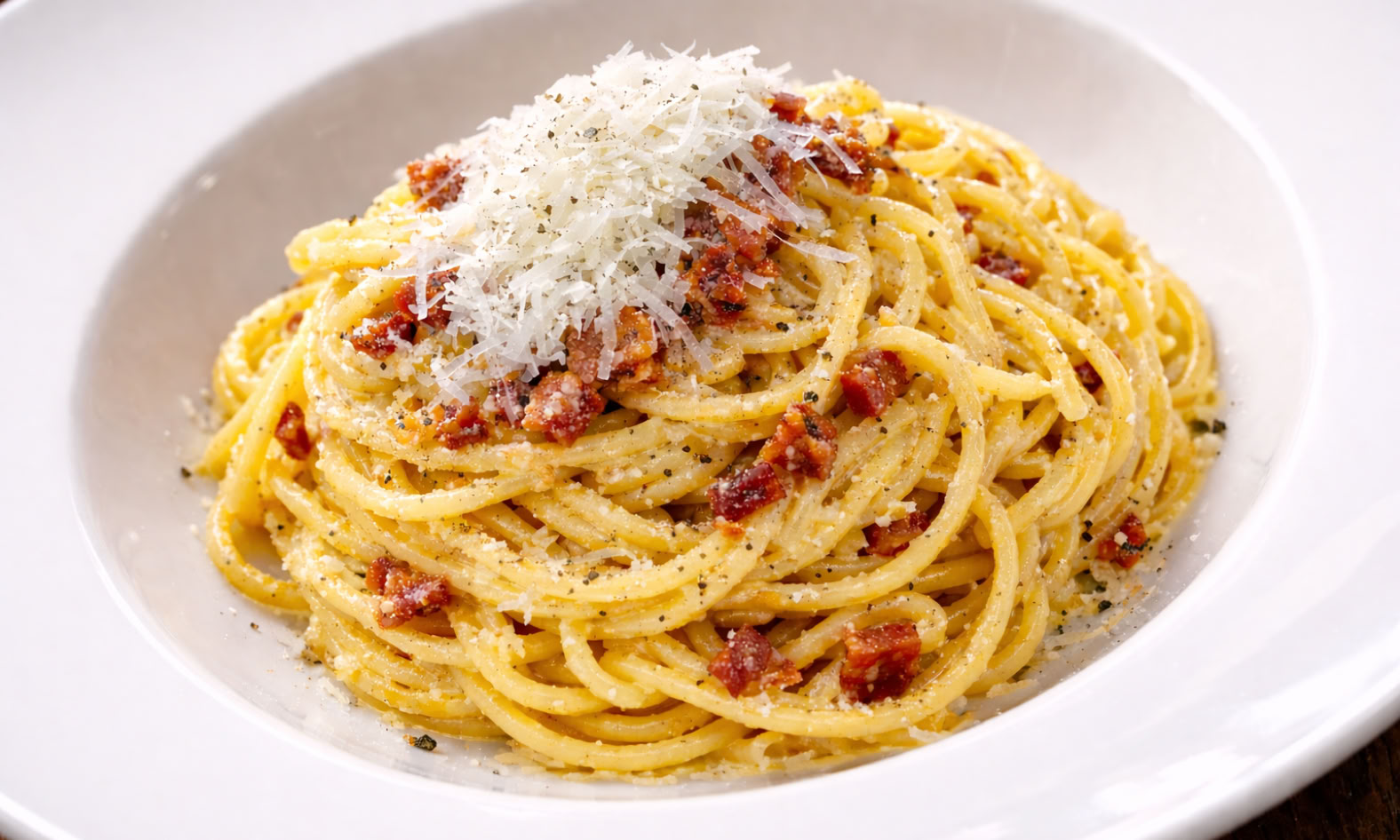 Diese 'Carbonara' ist nicht dass, was du bei den Pizza- und Nudel-Dealern hier in der Umgebung bekommst. Eine richtige Carbonara geht anders. Sie braucht weder Sahne noch Kochschinken. Die Carbonara ist ein schnelles und geschmacklich herausragendes Gericht.