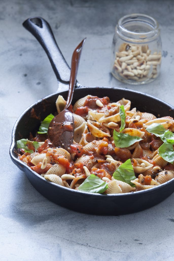 Die Rezepte decken die ganze Bandbreite der italienisch/mediterranen Küche ab: Bruschetta, Pasta-Gerichte, Brotaufstriche, diverse Getreidegerichte mit Dinkel Buchweizen, Focaccia-Brot, Risotto, Suppen, Salate und vieles mehr. Pizza sucht man hier vergeblich. Und das ist ausnahmsweise auch gut so, denn das Buch hat so viel mehr zu bieten.
