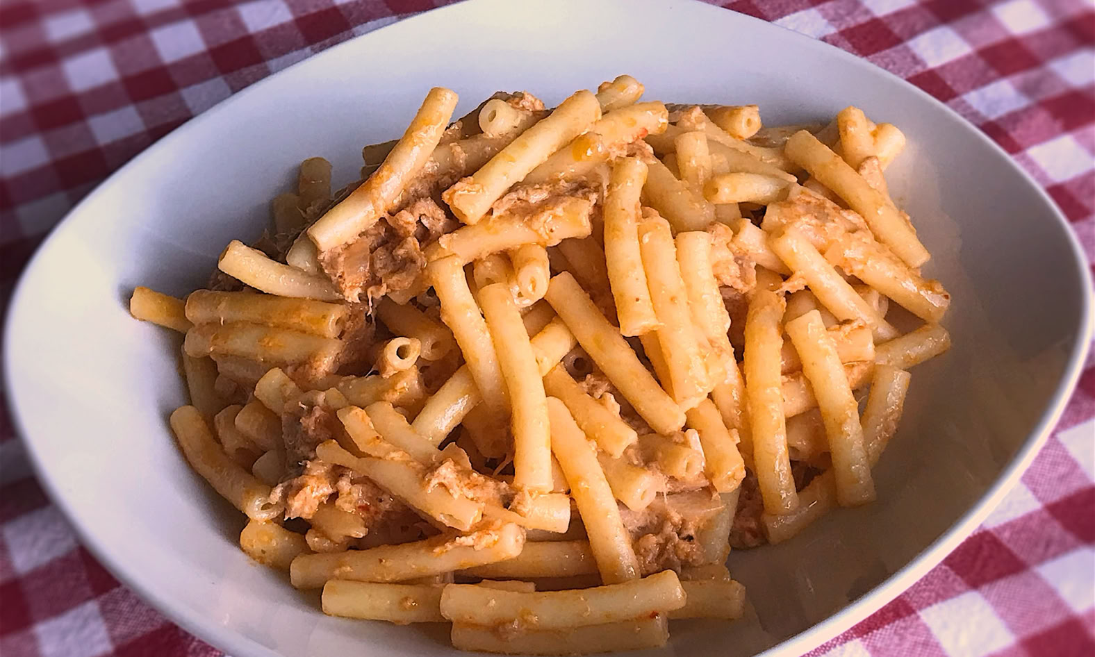 Einen Abend bestellt die Herzdame bei unserem bevorzugten Lieferdienst 'Makkaroni in Thunfischsoße (scharf)'. Ich habe sie probiert. Ja sie waren wirklich lecker. Das es so gut schmeckt, liegt an dem hohen Anteil von Sahne in dem Nudelgericht. Frischen Knoblauch suchte ich im gelieferten Gericht leider vergeblich. Es handelte sich um ein billiges fertiges Knoblauch-Öl.