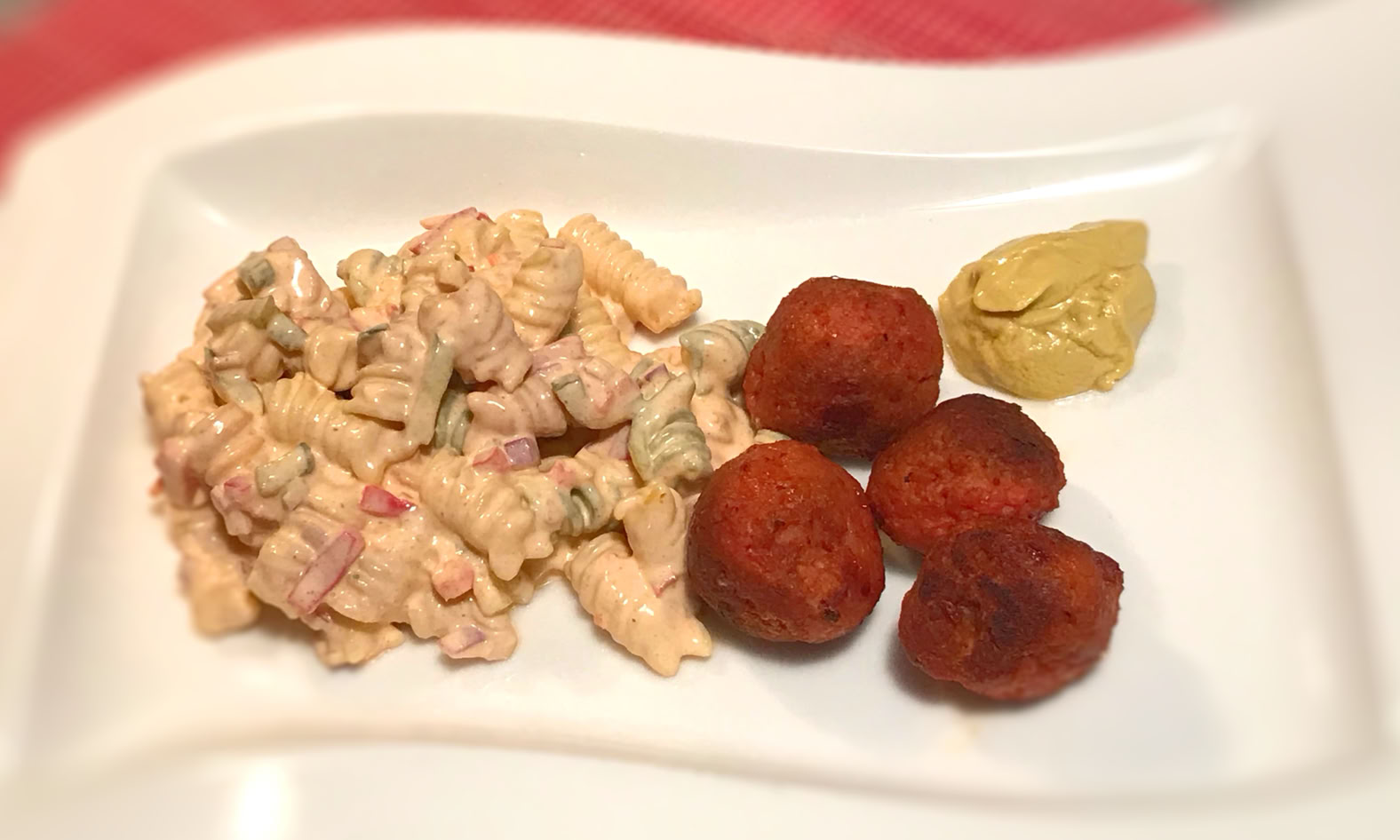 Ich liebe diesen Nudelsalat, denn er verzichtet auf schwere Mayonnaise. Die Salatsoße besteht hauptsächlich aus Frischkäse und Gurkenaufguss. Mit Paprika und ordentlich Chili abgeschmeckt, gibt es nochmal den richtigen Kick nach der dritten oder vierten Hopfenschorle. Der Salat passt zu allen Partybeilagen wie Würstchen und Frikadellen (mit Fleisch, vegetarisch oder vegan).