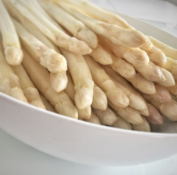 Anschließend den Fond mit einem Pürierstab durchmixen. Dann aufkochen lassen und den Kochspargel dazugeben. Circa 20 Minuten kochen lassen.